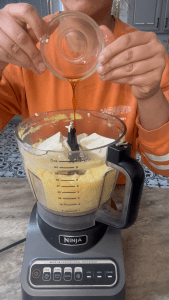 Add the silken tofu, vanilla extract, and honey to the food processor.