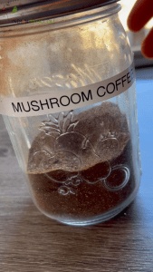 To make the mushroom coffee, combine instant coffee and mushroom powder and mix well.