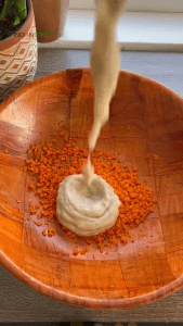 Combine the mashed bananas and grated carrots in a large mixing bowl.