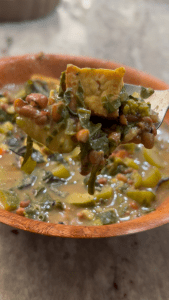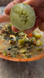 A warm, hearty, and weight-loss friendly soup made with protein-rich red cowpeas, air-fried tofu, and a medley of fiber-packed vegetables. Lightly spiced with cumin, coriander, turmeric, black pepper, and chili garlic, and finished with Thai basil and lemon juice for a refreshing touch.