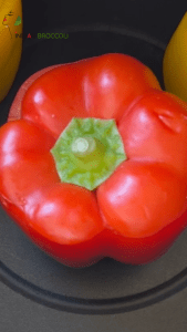 Fill each bell pepper generously with the lentil-quinoa mixture. Place the stuffed peppers in a baking dish and cover with the pepper tops.