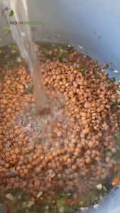 Add the drained brown lentils to the pot. Pour in enough water to cover them and cook until the lentils are soft and tender, adding more water if needed.