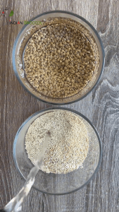 Wash and chop all the vegetables. Soak the quinoa and brown lentils separately for at least 1 hour, then drain and set aside.