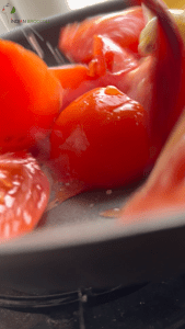 Heat a pan over medium heat. Add the chopped tomatoes and sauté for a few minutes until they start breaking down.