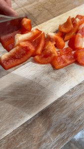Stir in the chopped red bell pepper and cook until slightly softened