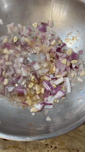 Cook for 3–4 minutes, allowing the raw smell of the spices to dissipate