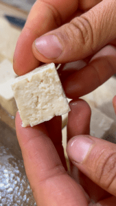 Chop firm tofu into bite-sized pieces