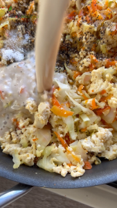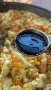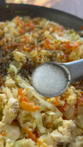 Season the mixture with salt, black pepper, sesame paste slurry, and soy sauce. Cook until well combined and mostly dry.