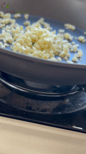 Heat a frying pan over medium heat and add the garlic. Sauté briefly until fragrant.